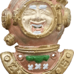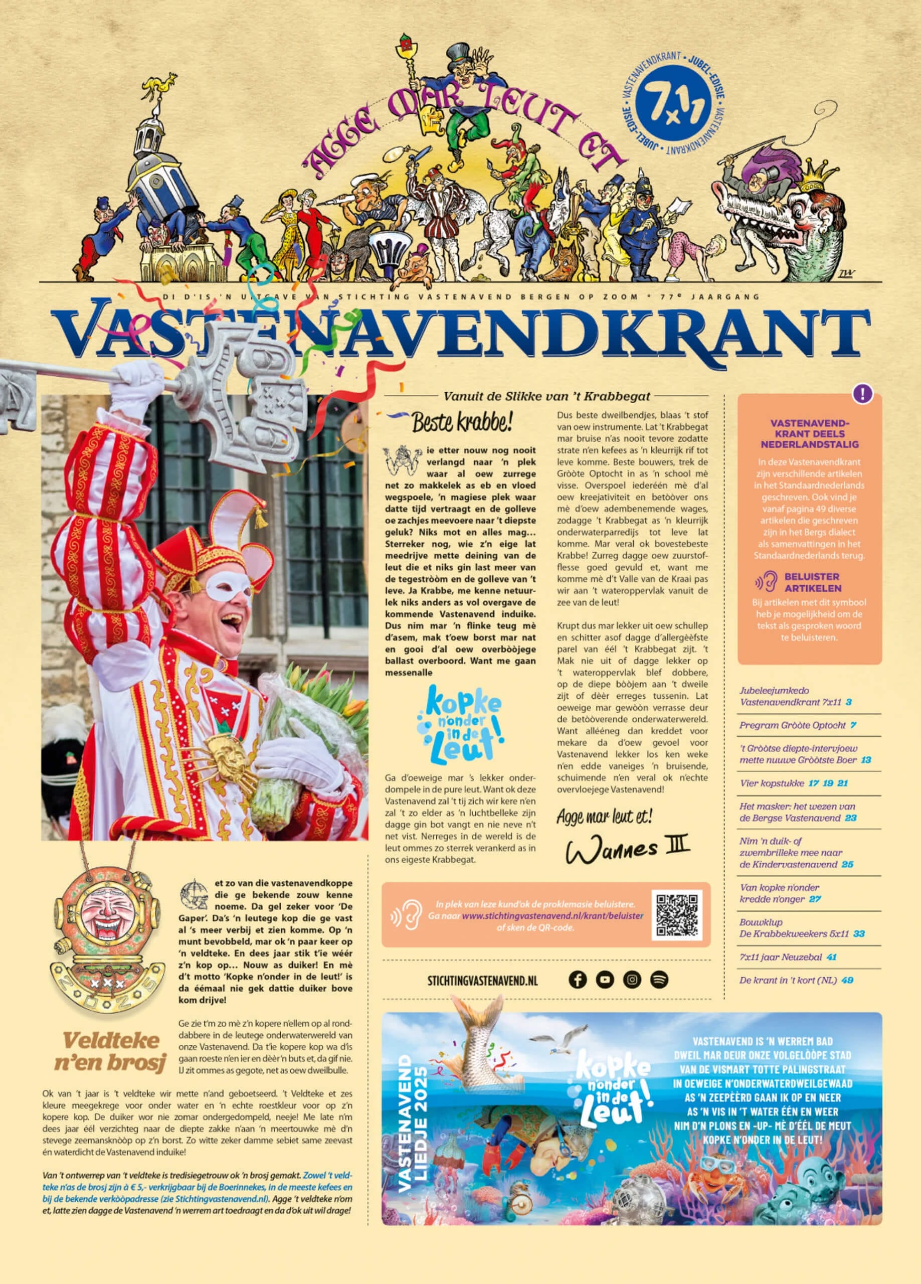 Het is nog geen officieel veldteken, maar een soort draaginsigne, gemaakt van papier en in de vorm van een driehoek. De kleur is oranje of wat roodachtig. Aan de voorkant zie je de Blauwe Schuit, en op de achterkant staat: “Ik zijn lid van de Stichting Vastenavend voor 1946”. Bovenaan zit een gaatje waardoor een stoffen lintje is gehaald, en aan de onderkant hangt een strook papieren franje – bijna net zo breed als het driehoekje zelf.